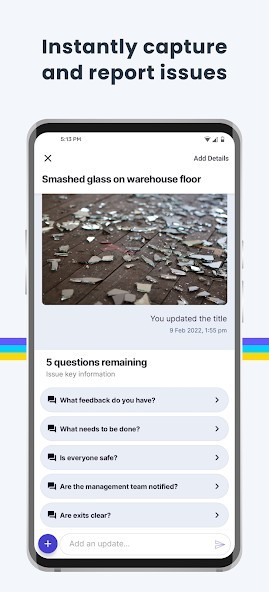 •Log issues as they arise with an intuitive, chat-style interface